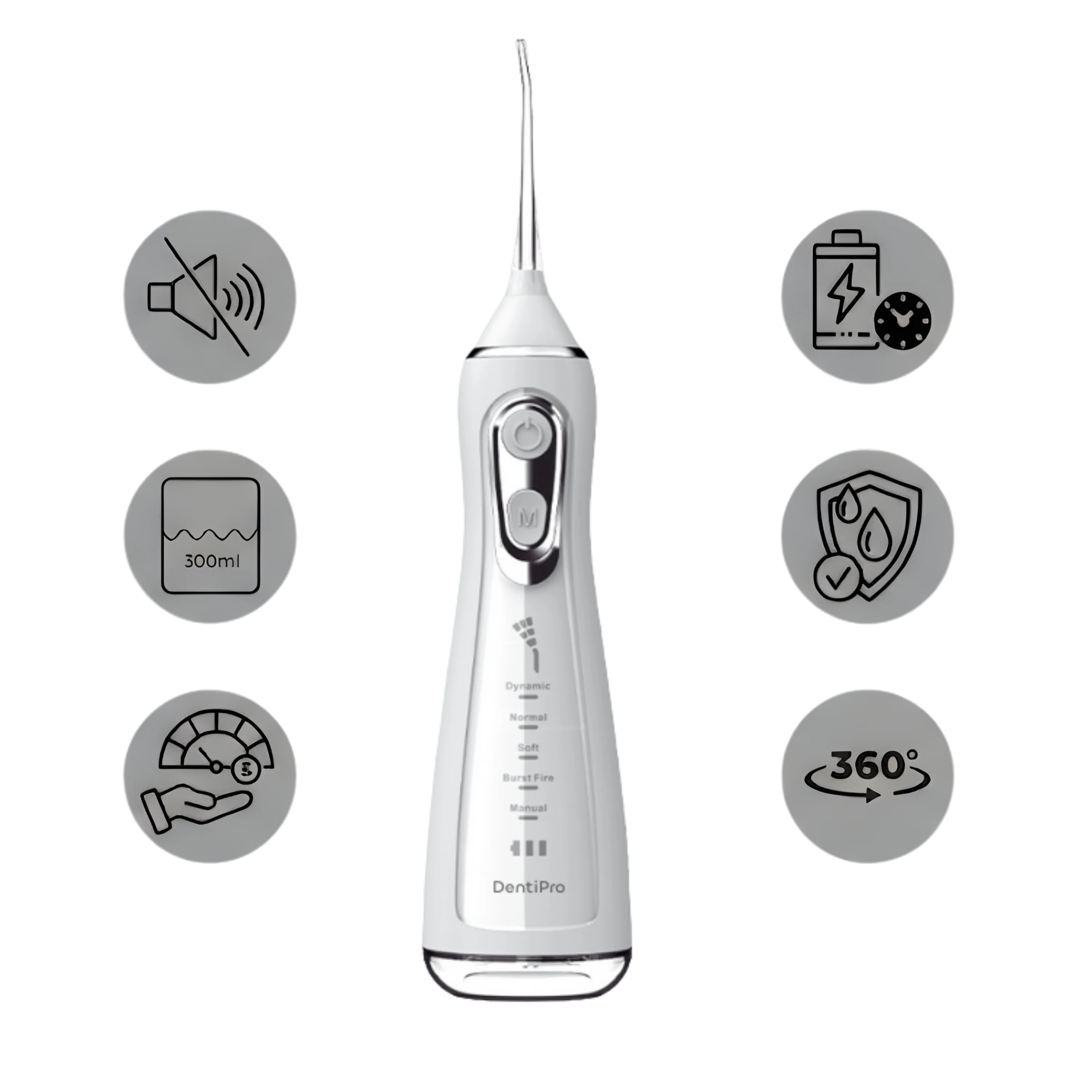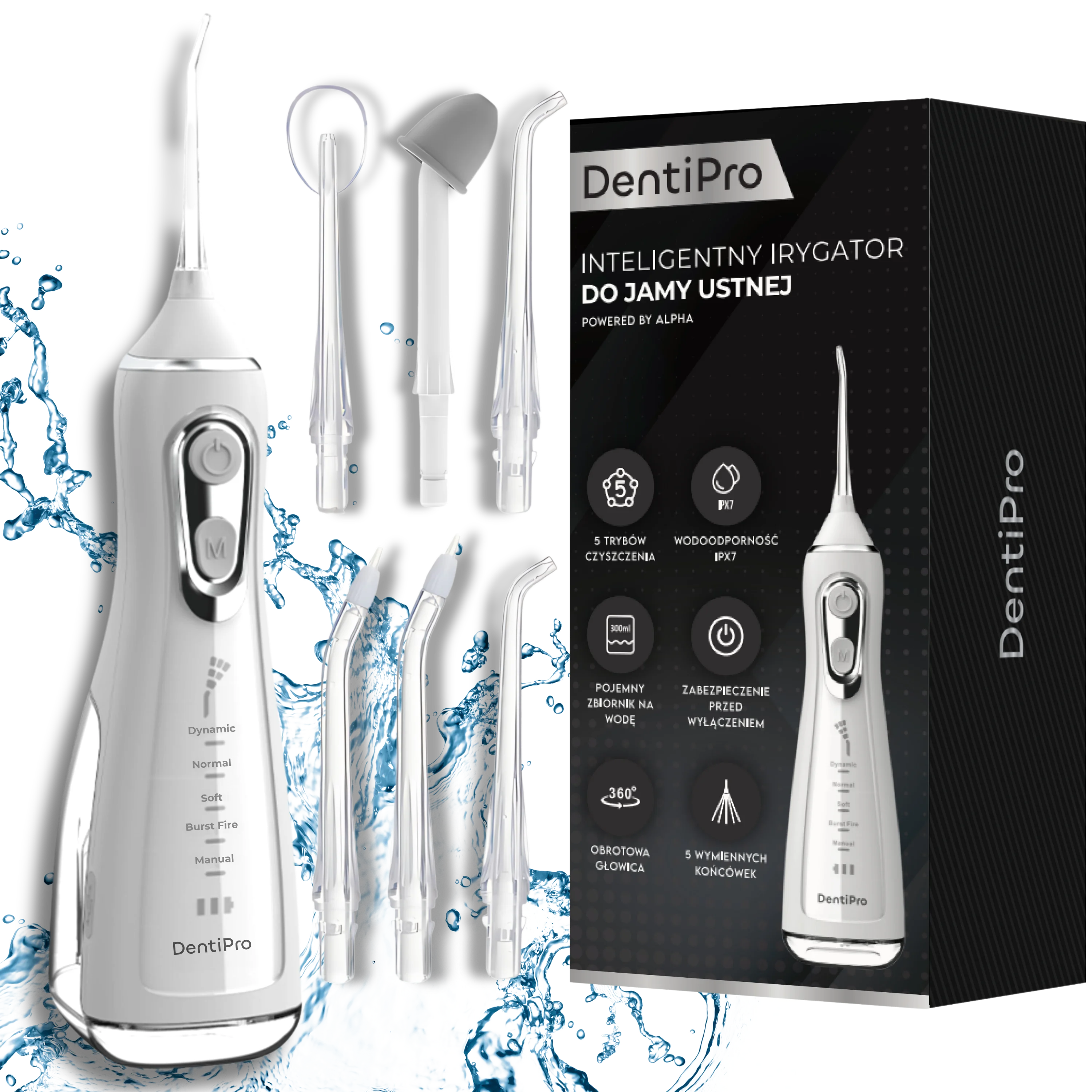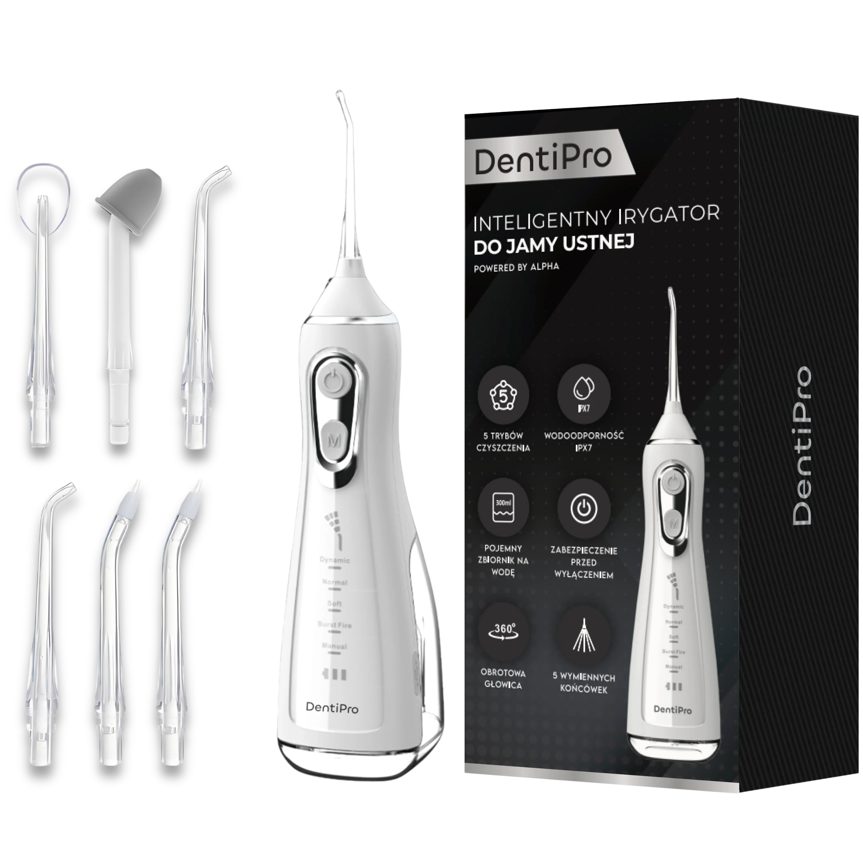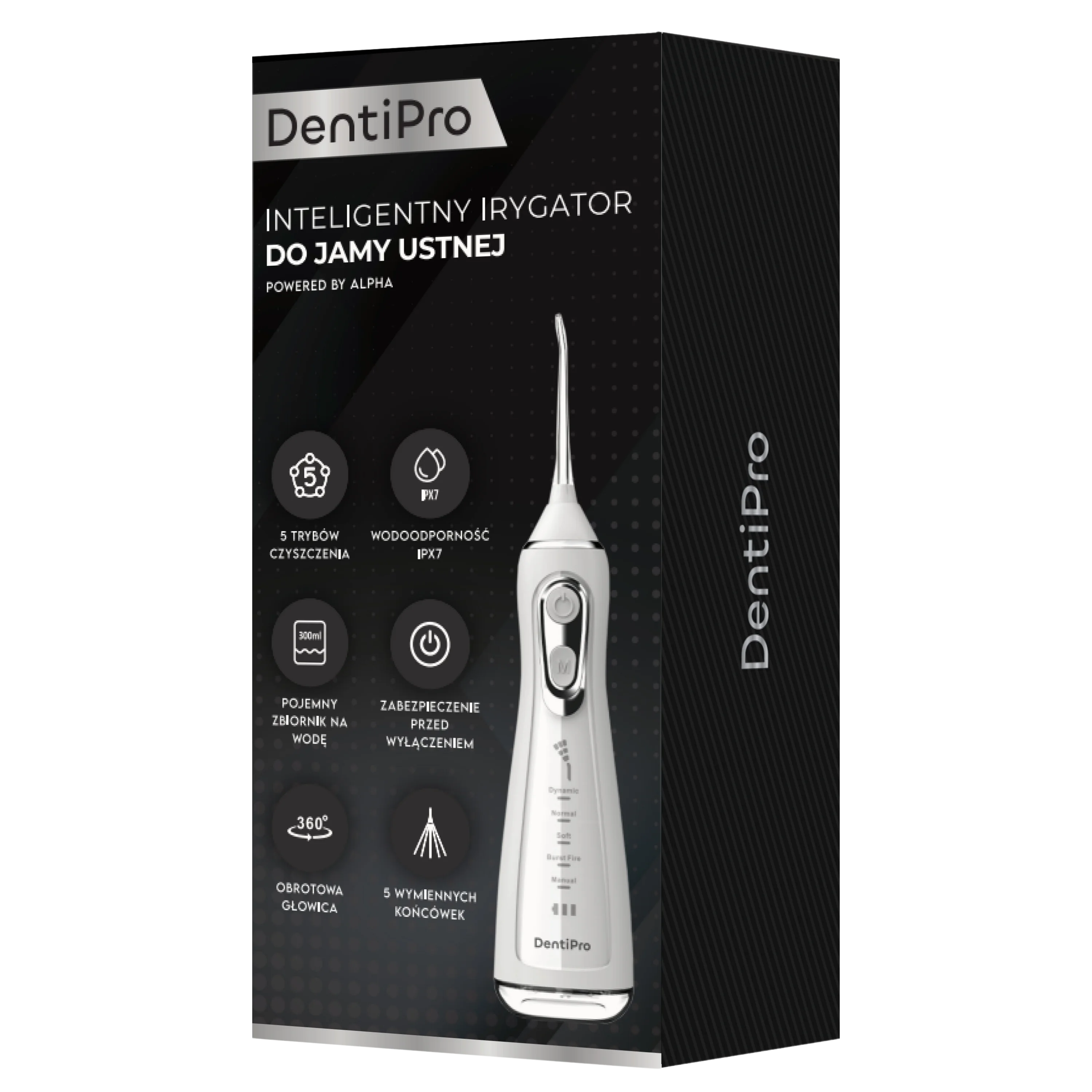 DentiPro to nowoczesna wodna nić dentystyczna, która pozwala pozbyć się do 99,9% płytki nazębnej, resztek jedzenia oraz chorobotwórczych bakterii. Dzięki współpracy ze stomatologiem, irygator oferuje 5 trybów pracy, które zapewniają maksymalną skuteczność i prostotę użytkowania.