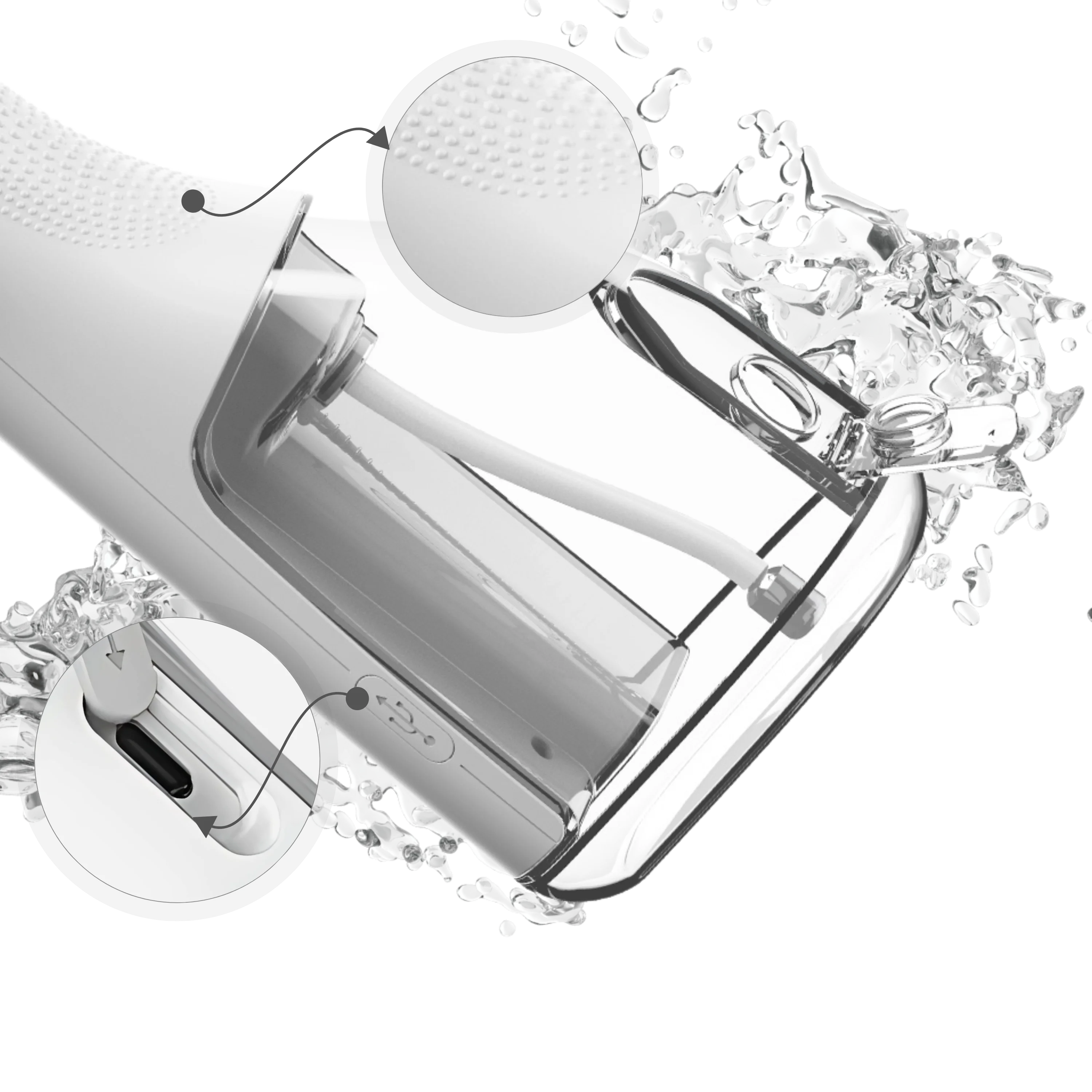 Urządzenie jest w pełni wodoodporne i wyposażone w obrotową głowicę 360°, która dociera do najtrudniej dostępnych miejsc. To idealne rozwiązanie dla każdego, kto chce zadbać o higienę jamy ustnej skuteczniej niż przy użyciu tradycyjnej nici dentystycznej.